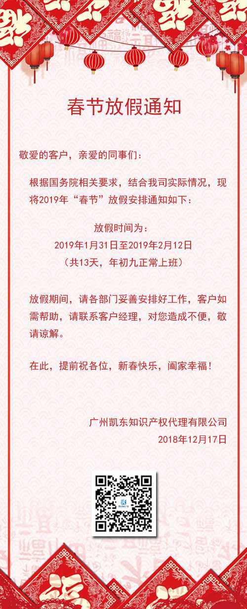 >>新聞資訊>>2019年春節(jié)放假安排通知