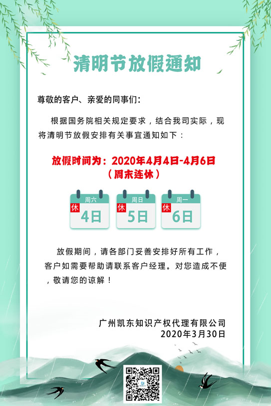 廣州凱東公司關(guān)于2020年清明節(jié)放假安排的通知